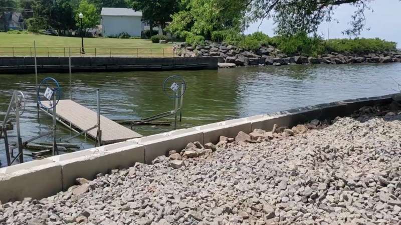 This shoreline project gave our client a reliable break wall to protect their waterfront property from erosion while also making the beach more usable and safe. The large concrete barriers provide long-term stability, ensuring the shoreline will stand strong against water movement from Bear Creek and Lake Ontario.