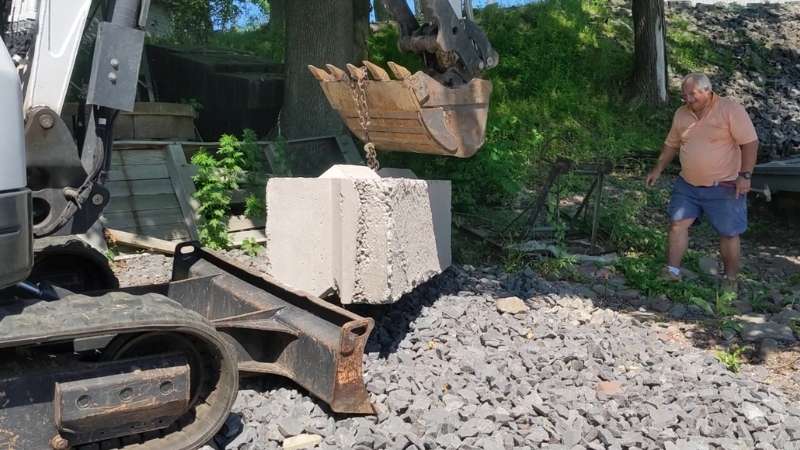 We supplied and delivered 25 large concrete barriers, each measuring 6 feet by 2 feet by 2 feet and weighing 3,600 pounds. Using the client’s Bobcat excavator, we hauled and carefully placed the barriers along the shoreline.